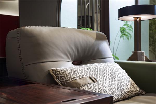 不仅木材讲究,在软质材料的选用上同样不将就。从意大利进口面料的细腻触感,到经欧洲进口头层牛皮植鞣工艺处理的皮革温润质感,再搭配高密度高回弹的东亚海绵,共同构筑了舒适与实用并存的家居体验。