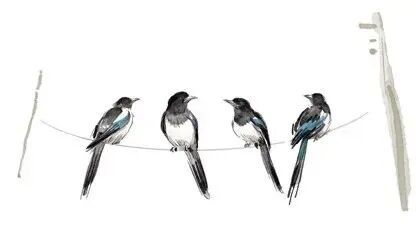 再后来,外婆又带给白果四只小喜鹊,它们分别叫老大喜、老二喜、老三喜、老四喜,这四只喜鹊各有各的性格。老大喜总是欺负老四喜,老四喜吃虫子的时候,老大喜就抢它的虫子,老四喜占了水槽的好位置也要去抢……老四喜打不过老大喜,就只能躲,为此还研发出了一系列自保技能,比如鸟类中的凌波微步……