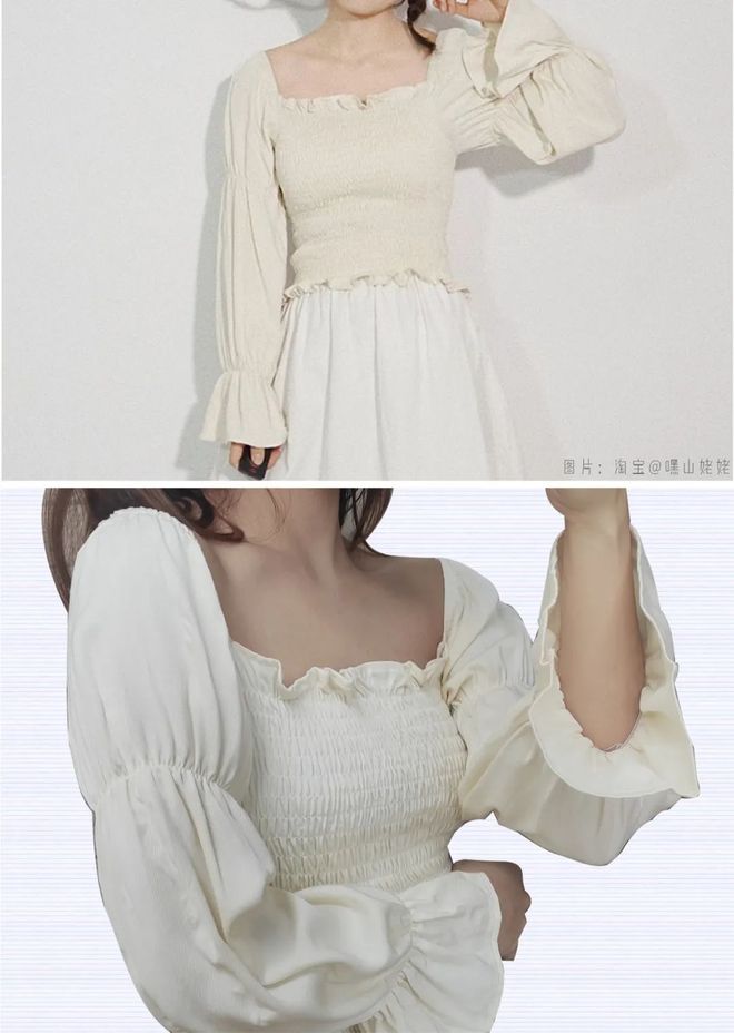 这件强推!乳白色很适合黄皮,泡泡袖做得也很好看,穿上简直就是小公主嘛!(说着说着搂住了自己的小肚肚)