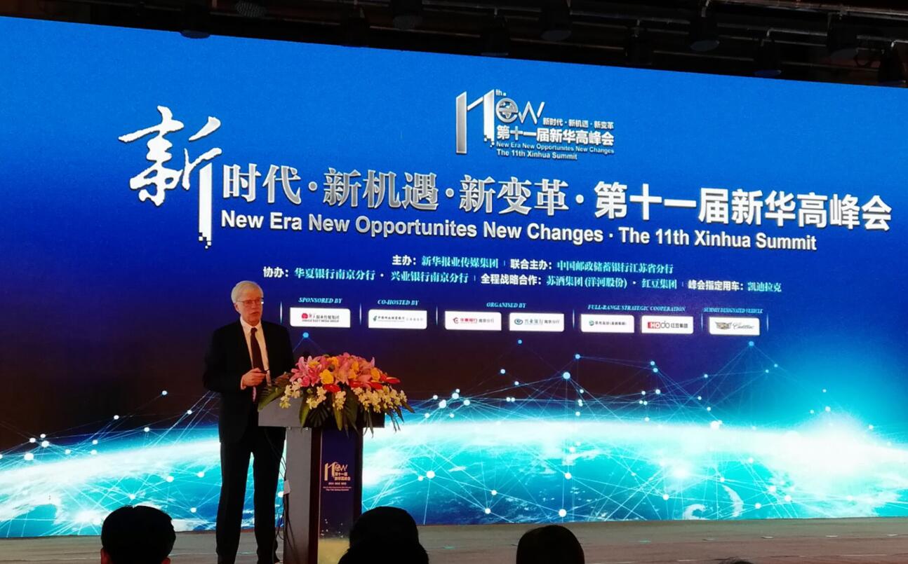 最后,预祝第十一届新华高峰会取得圆满成功,祝霍姆斯特罗姆先生中国之行愉快,祝各位嘉宾新年快乐、事业顺达。谢谢大家!